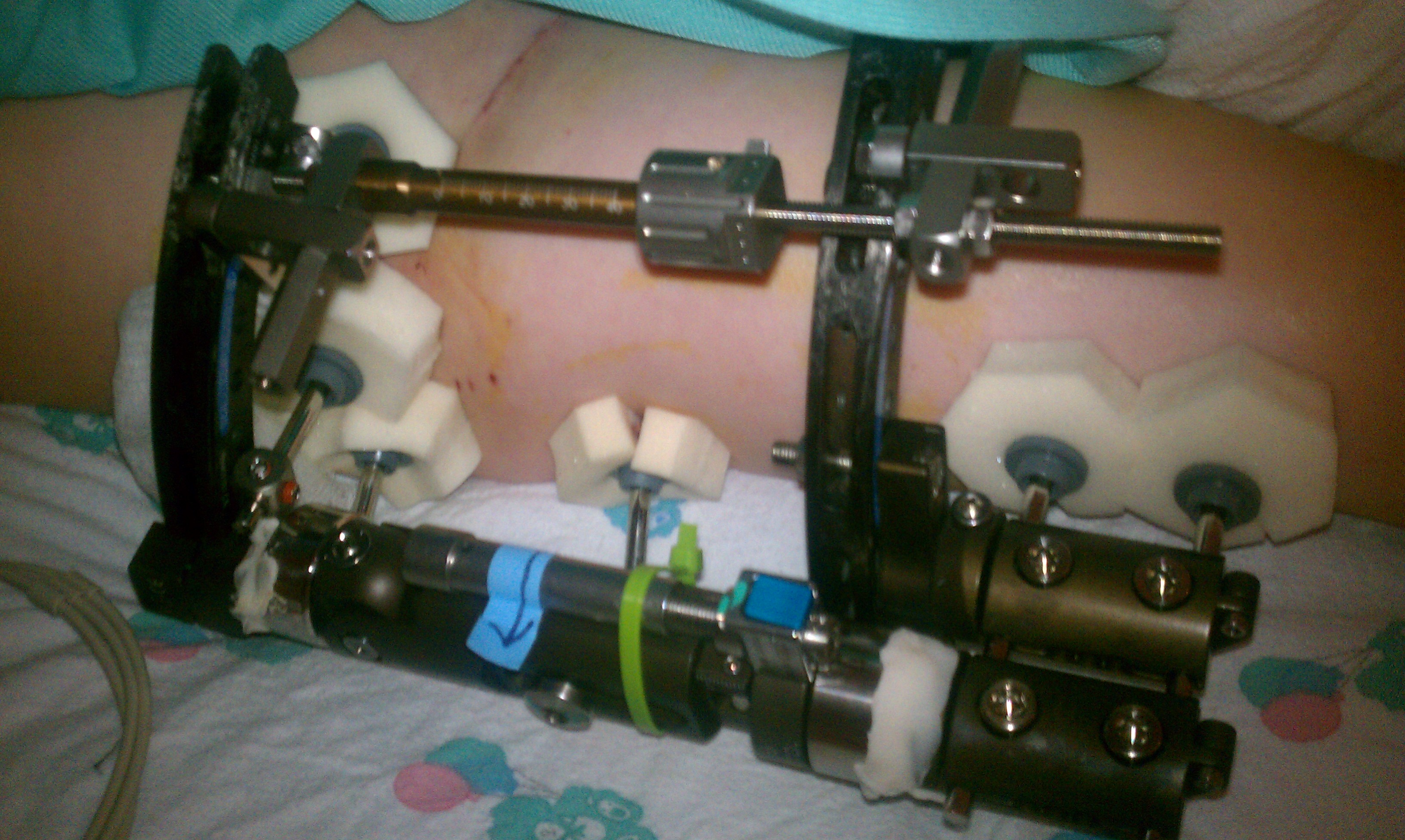 I know today the Lord heard all of our prayers! Hunter went into OR this morning at 8:25, like his usual brave little self. Around 9:30 the doctor was out to see us with good news. The doctor did not need to move any pin sites and didn’t need to cut out any of the skin. Once in OR they only needed to make adjustments to the fixator. Hunter has had a lot of firsts this week. Hunter’s fixator was made into a convertible as they cut the top of the ring down. This was to give him more room to move without touching the fixator. The fixator was moved away from the body further with a one of a kind angle. But the doctor said he still had great hip placement and great range of motion. Dr. Standard also used rubber stoppers on the pins for the first time ever to hold down the sponges without any gauze wraps. Everything looked absolutely wonderful after returning from OR. Mom and I could not be more pleased with Dr. Standard, his work, and his 5 star bedside manners. The staff at Sinai has also been top notch. PTs, RNs, pediatricians, housekeeping, and even maintenance have been wonderful. This evening was the least stressful night we have had since Wednesday. We should be able to leave the hospital and return to the RMH tomorrow. This emergency procedure today will not slow any recovery. Unfortunately, it will push back our physical therapy a bit. We are still hopeful that we may be able to come home to our family and friends this coming weekend; keeping our fingers crossed. Praise the Lord for a good day, and God bless you all for your thoughts and prayers!!